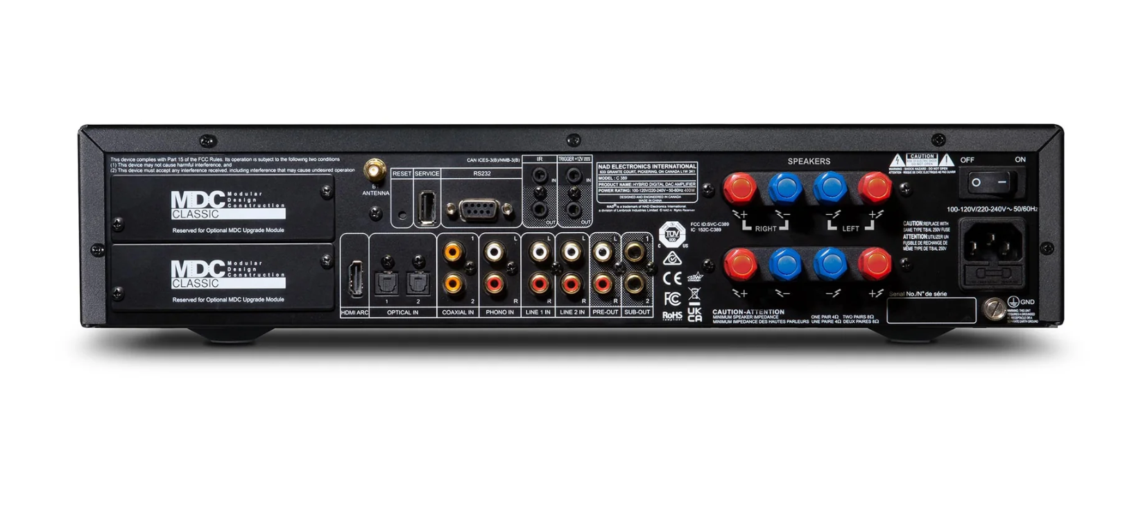 The digital section features the same 32-bit/384kHz ESS Technology Sabre DAC chip used in NAD’s award-winning Masters M33 amplifier. Renowned for its exceptionally wide dynamic range, ultra-low noise and distortion, and near-zero levels of clock jitter, the ESS Sabre 9028 DAC enables the C 389 to deliver astonishing clarity and near-holographic imaging on all sources.