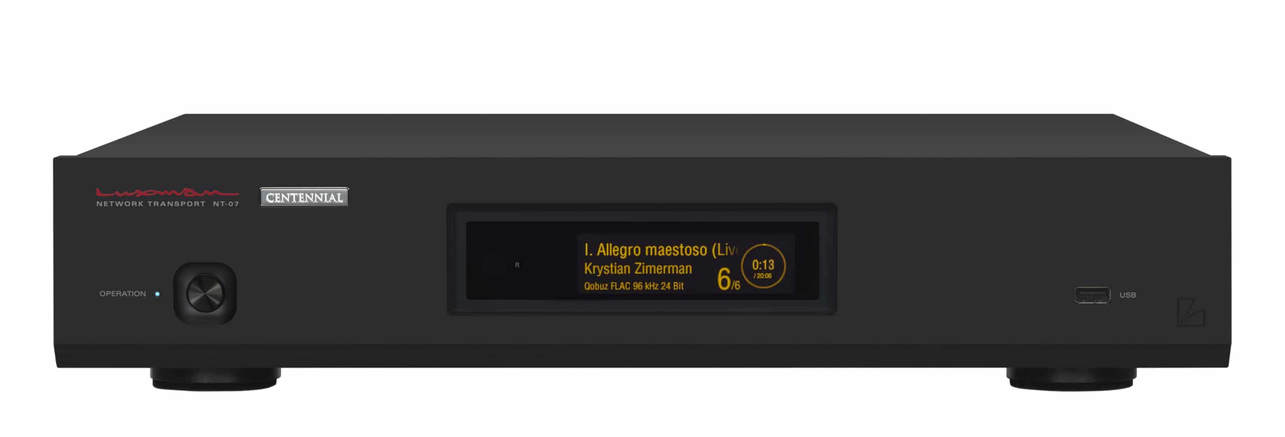 The NT-07 is LUXMAN's first network transport product that enables satisfying playback of various digital sound sources transmitted over networks in a sophisticated operating environment.