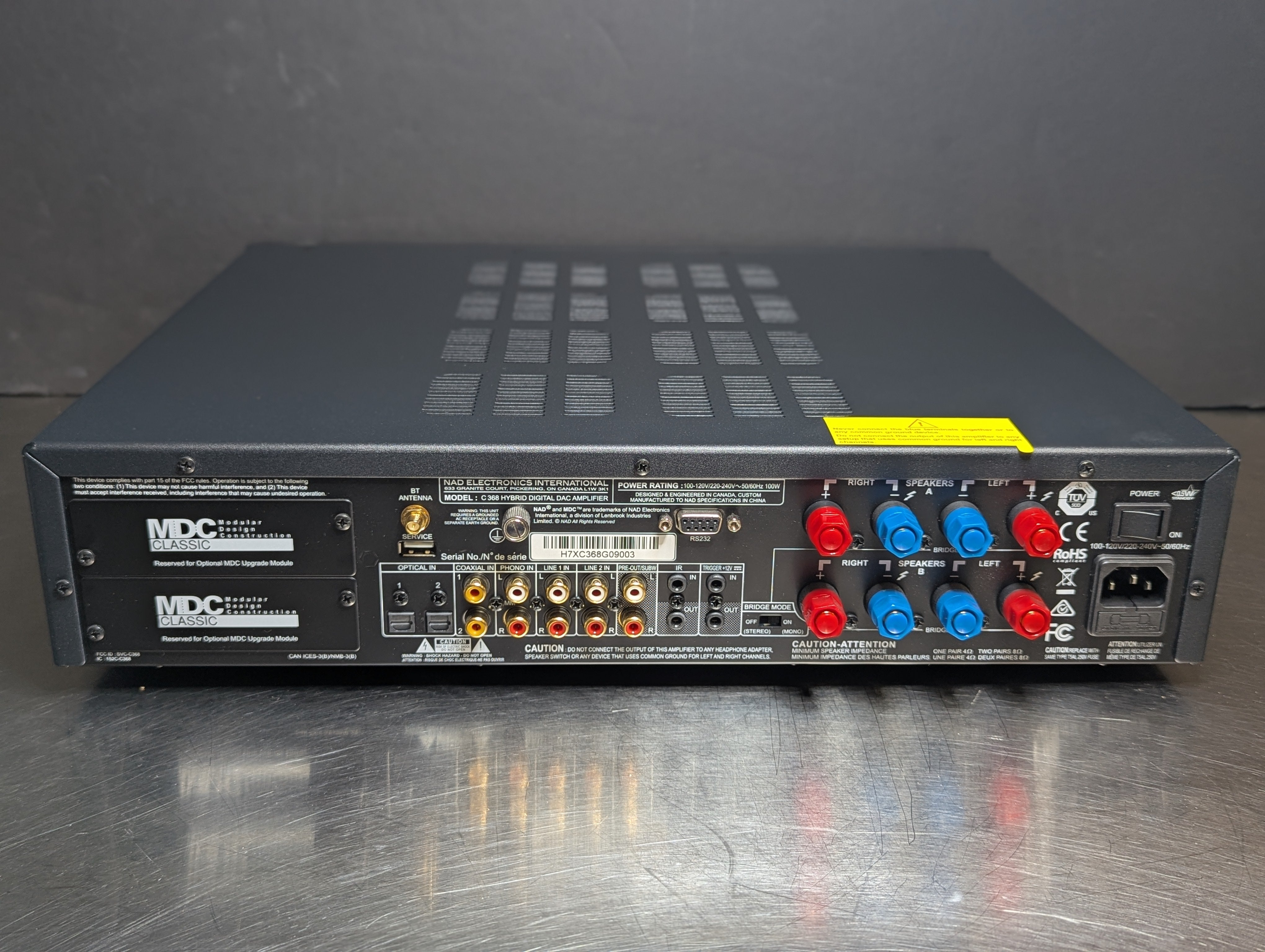 Modular Design Construction (MDC), an exclusive feature of NAD products, allows you to customize your amplifier with additional capabilities and features. The two available MDC slots can accommodate a variety of upgrade modules including 4K video capable HDMI switching, additional Digital Inputs, additional Analog and Phono Inputs, and one of the most advanced Hi-Res Audio multi-room wireless systems available, the BluOS music management system developed by Bluesound. BluOS connects to your network and is controlled via smartphone, tablet or desktop to manage your music collection and connect you to a growing list of high-quality streaming music services.