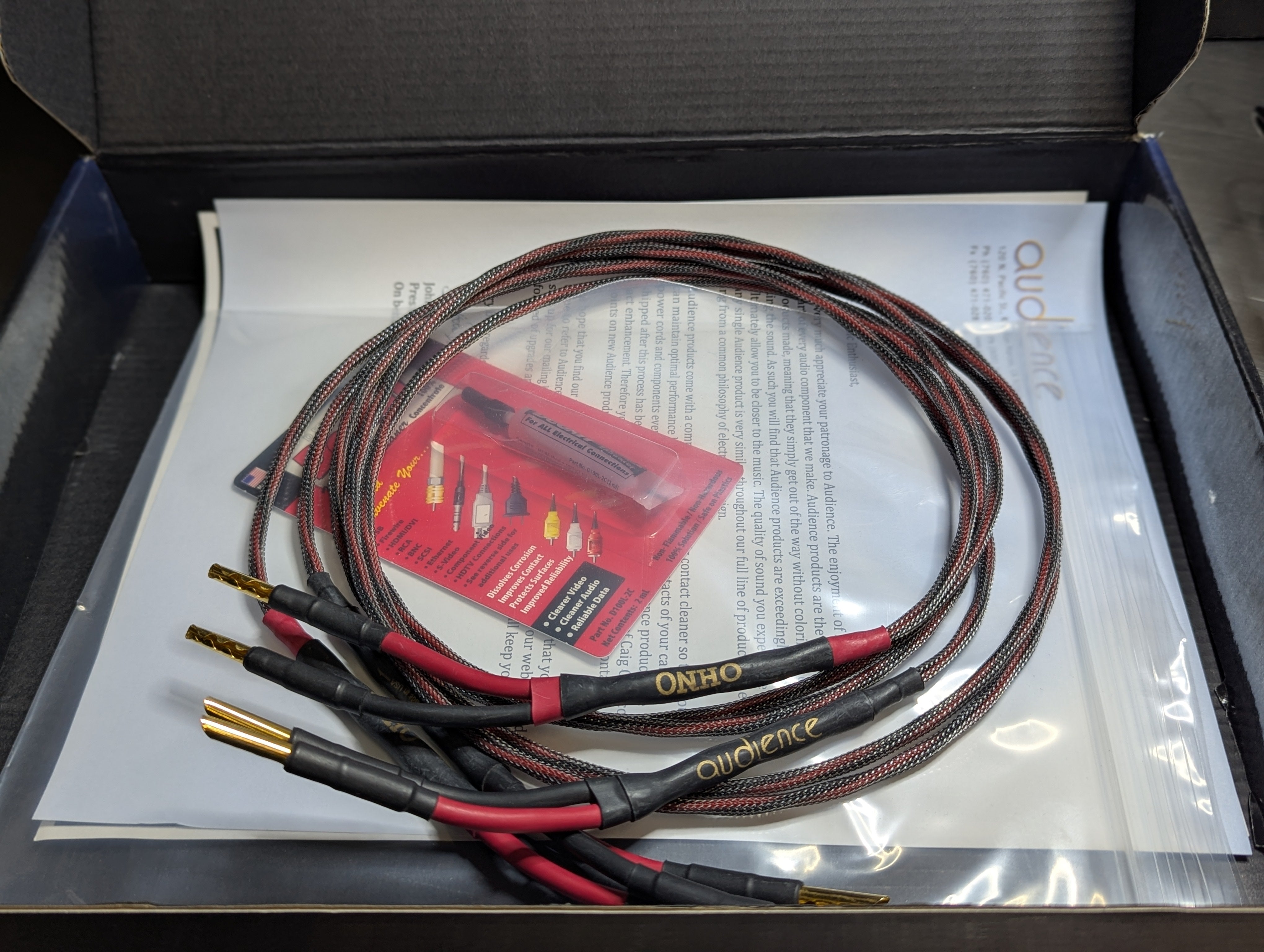 Audience OHNO cables are designed to achieve the very highest level of performance at an entry level price. OHNO cables are named after Dr. Atsumi Ohno who invented the method of manufacturing mono-crystal wire, a highly sophisticated process of producing wire without the crystalline barriers found in all conventional wire. Whereas copper typically exhibits thousands of crystals per meter, as audio signals move through this maze, energy is lost at every crystalline juncture. OHNO copper is a single crystal providing an unobstructed path for transmission of the purest audio signal. OHNO cables are made with XLPE (cross linked polyethylene), one of the very best insulations for high end audio cables.