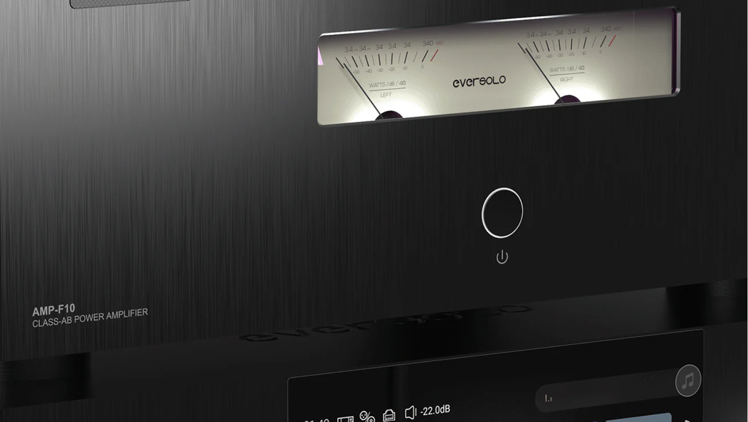 The Eversolo AMP-F10 delivers up to 950W in bridged mode and 320W per channel at 4 ohms, ensuring powerful performance across all volume levels. Whether you're enjoying stereo sound at home or experiencing the electrifying atmosphere of live music in a large space, the AMP-F10 delivers impressive power that draws you into an unparalleled soundstage. *At 8 ohms, it can provide 200W of power per channel, and up to 650W in bridged mode. *At 4 ohms, it can provide 320W of power per channel, and up to 950W in bridged mode.