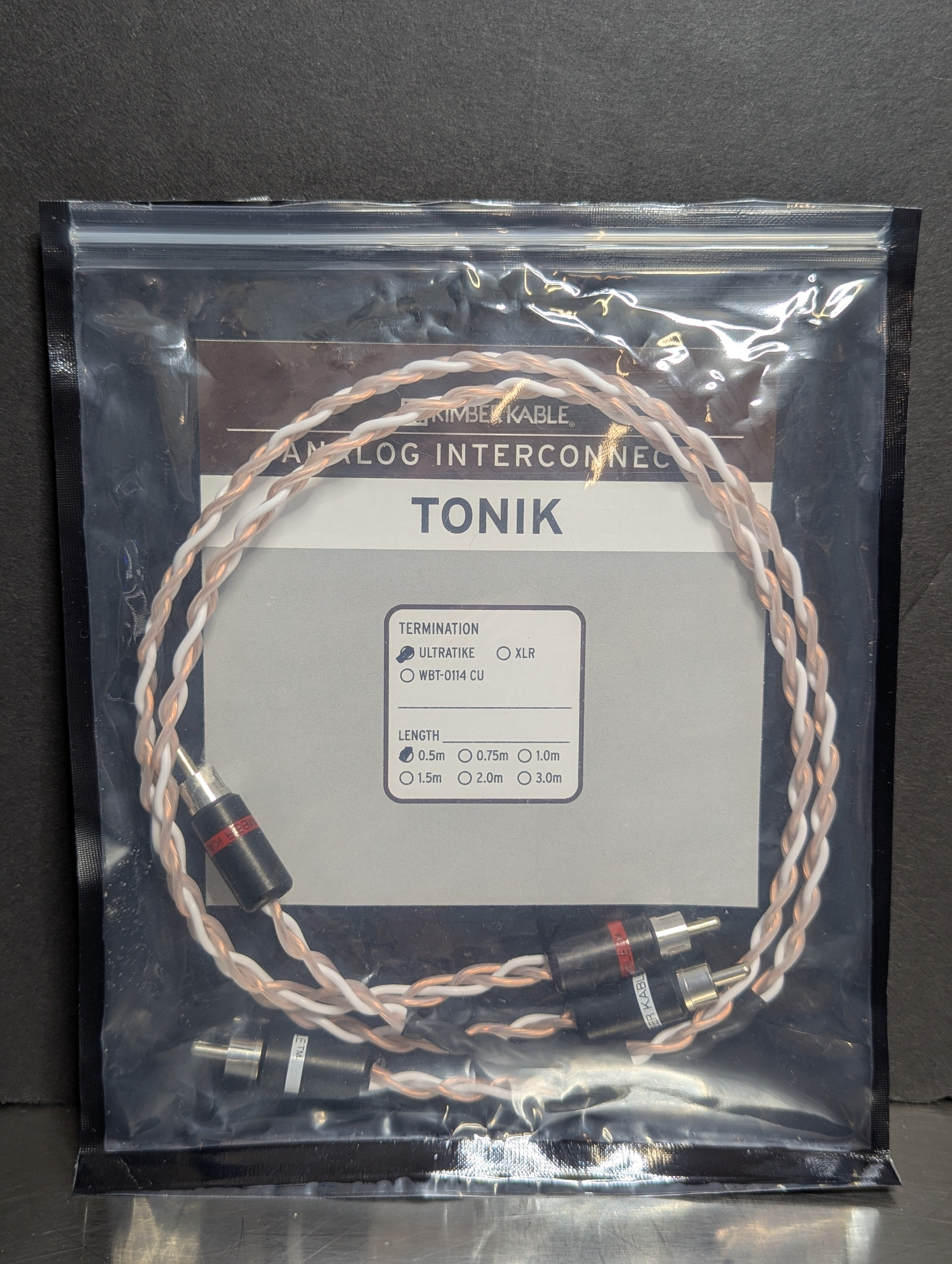 Like the first tone of a scale, the Tonik interconnect provides the foundation of truly accurate performance and value. Through the use of Kimber Kable's legendary tri-braid field geometry, VariStrand™, Ultrapure copper conductors and our special recipe PE dielectric, the Tonik allows music to flow with power, smoothness and harmonic richness. Tonik single-ended uses our Ultratike™ RCA type connector. Tonik balanced features "studio grade" XLR connectors with silver plated contacts.