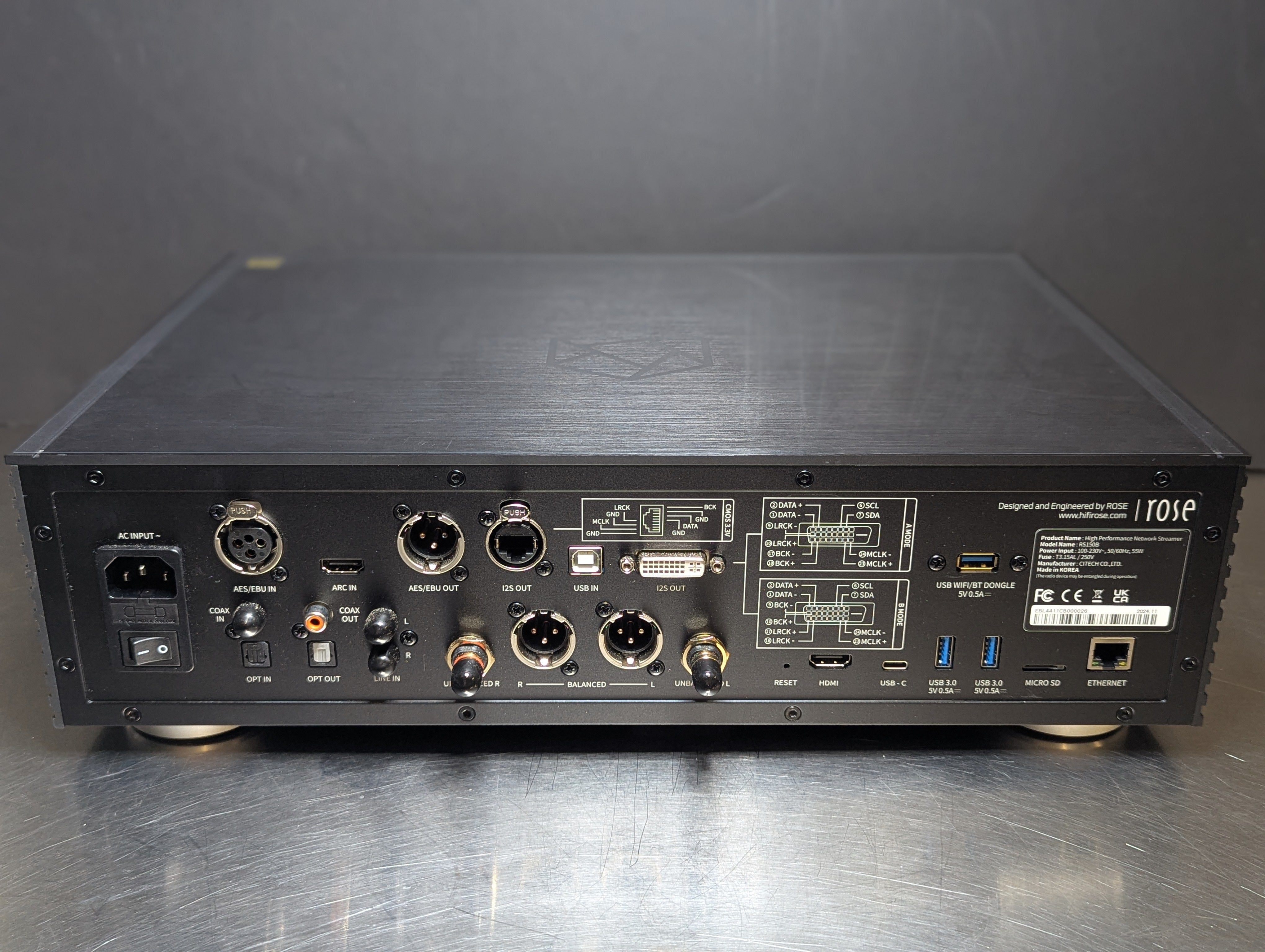 HiFi Rose RS150B Network Streamer provides an innovative musical experience. Stream and play ultra-high-quality music, 4K high-definition video, ad-free YouTube, Podcasts, various radio stations from around the world, CD playback/Ripping (with your external USB CD Drive and by adding a SSD in the provided bay) , and more.