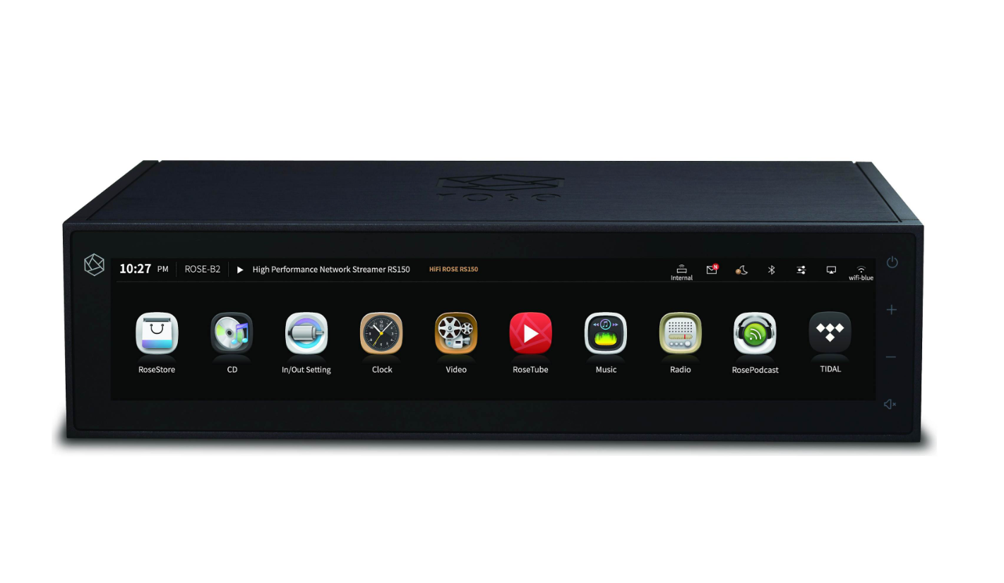 The RS150 features the Rose OS operating system, enabling an innovative music experience. It allows you to stream and play your music in ultra high quality, enjoy support for 4K videos, a commercial-free YouTube application, as well as many radio stations, manage CD playback and burning (via an external drive) and much more!
